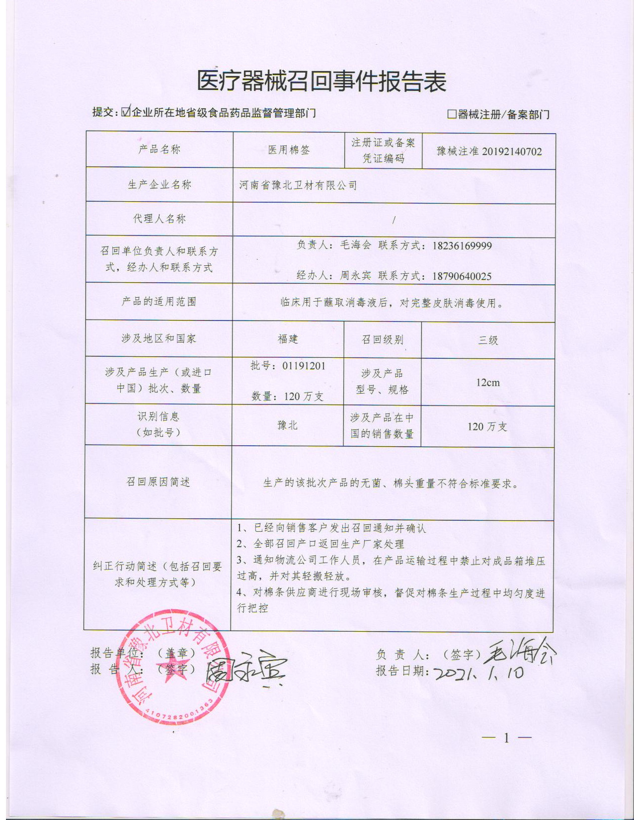 针对我公司出现的医疗器械召回事件,现处理意见如下所示: